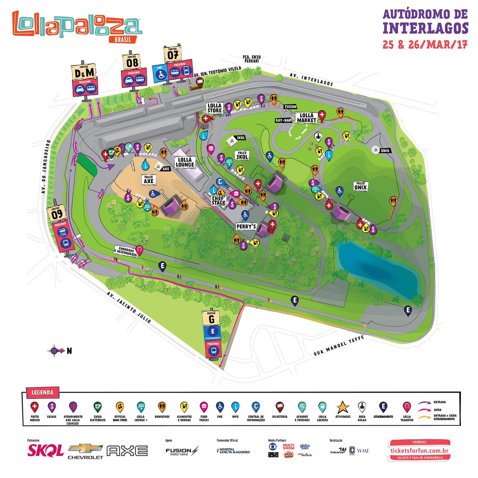 Fora publicado recentemente ao site oficial do evento um mapa de acesso geral, aos quatro palcos: Axe, Onix, Perry e Skol incluindo também as áreas de entrada, estacionamento, o Lolla Store, Lolla Market, banheiros, bares, serviços ambulatoriais, estações de recarga das pulseiras cashless, a bilheteria, e aos pavimentos como a pista geral próxima aos palcos, incluindo também a área de acesso ao Lolla Lounge.